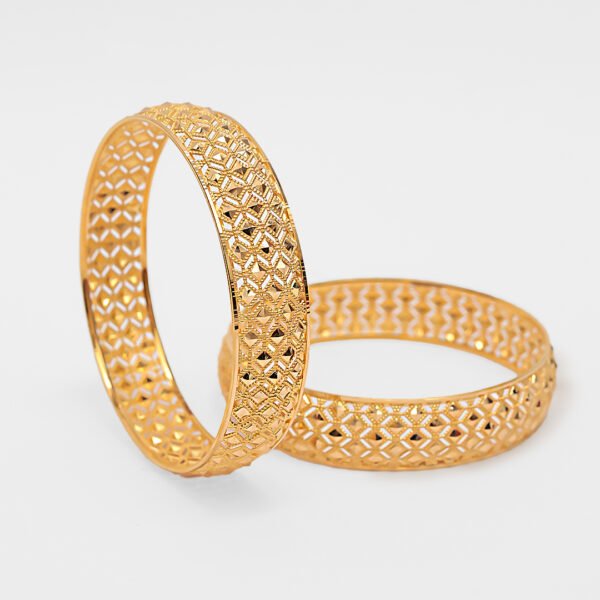 Adorn your wrists with timeless elegance through these fancy melting 18K gold bangles, crafted with intricate lattice patterns and a flawless polished finish. Designed to reflect modern grace blended with traditional artistry, these bangles add a royal touch to every occasion. ✨ Product Details: Material: 18K Hallmarked Gold Design: Fancy […]